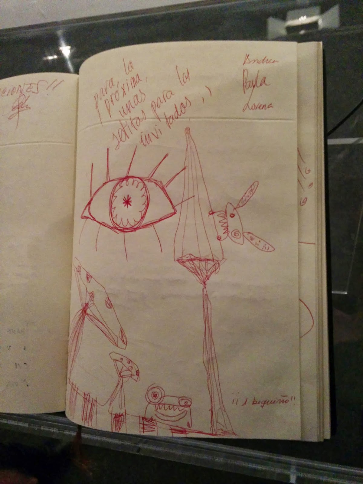 Lo mejor de todo, sin embargo, es el libro de visitas. Recomiendo revisarlo a fondo una vez hayas visto la obra de Brian. Como podéis ver, hay escritos de gente de todas las edades y críticas algunas más divertidas que otras.